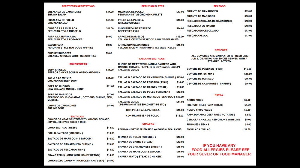 Introducing Bravo Peru Takeout, a hidden gem serving authentic Peruvian cuisine in White Plains, NY. Offering delivery and takeout, this restaurant caters to all, with wheelchair accessible facilities and a welcoming atmosphere. The menu boasts delectable appetizers like chicken wings and salchipapa, as well as mouthwatering entrees such as lomo saltado and chaufa dishes. Customers rave about the flavorful food and generous portion sizes, with vegan options available upon request. With positive reviews highlighting the excellent service and great taste, Bravo Peru Takeout is a must-try for those craving a taste of Peru. Don't miss out on this culinary experience that will leave your taste buds satisfied and craving more.